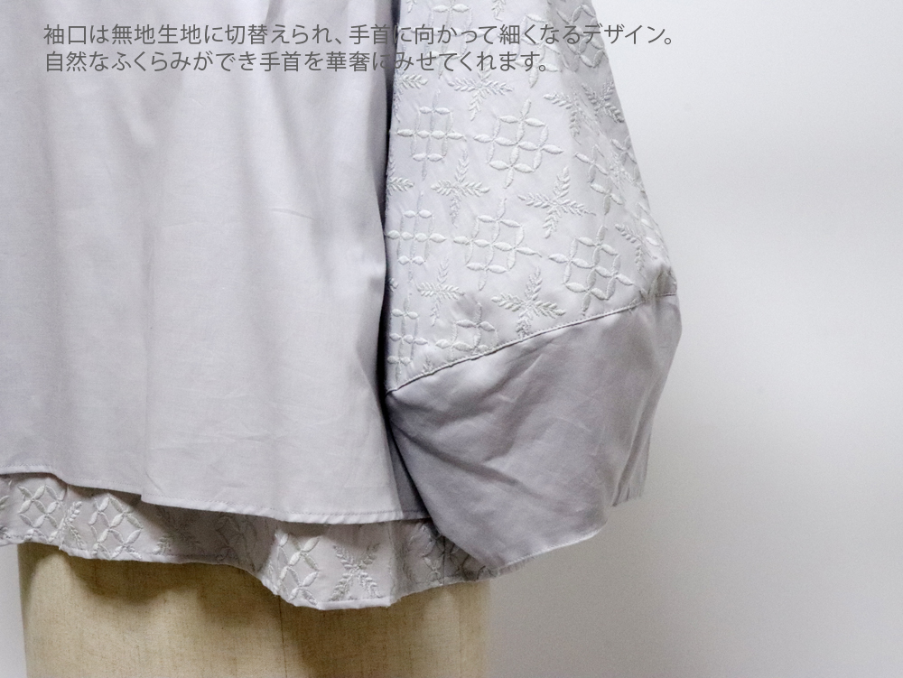 トップ > ファッション > トップス > ブラウス・シャツ・プルオーバー > スタンプアンドダイアリー Versoa(ヴェルソア)刺繍が施された綿100%生地の後ろボタンブラウス