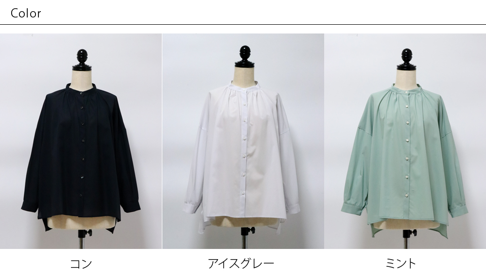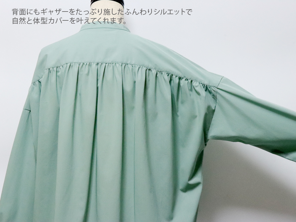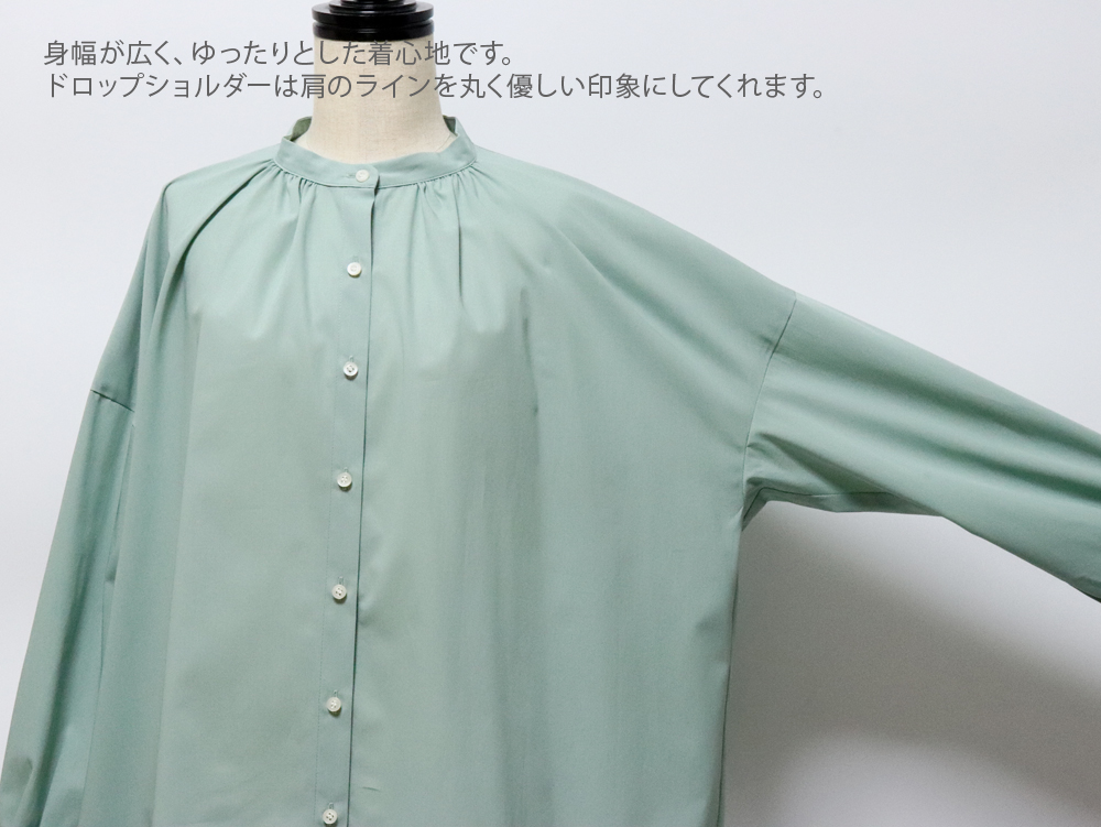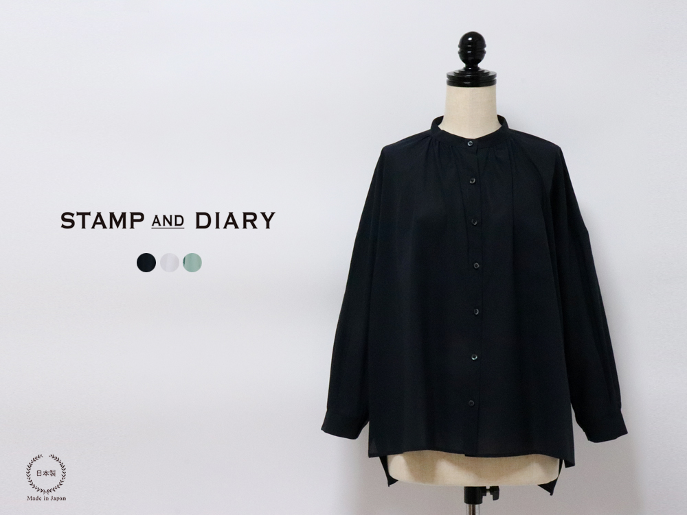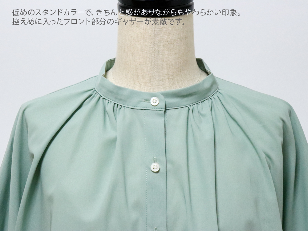 トップ > ファッション > トップス > ブラウス・シャツ・プルオーバー > スタンプアンドダイアリー 綿100% さらっとした風合いと上質なつや感が素敵なバンドカラーギャザーブラウス