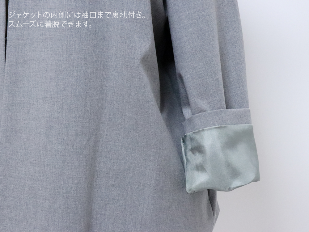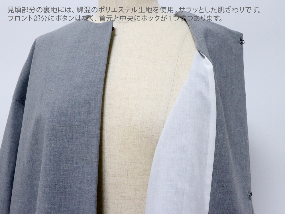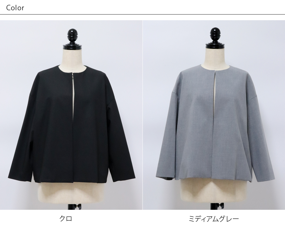 トップ > ファッション > トップス > コート・ジャケット > ユティリテ 程よいハリとなめらかな肌触り ロングシーズン使えるノーカラーボックスジャケット