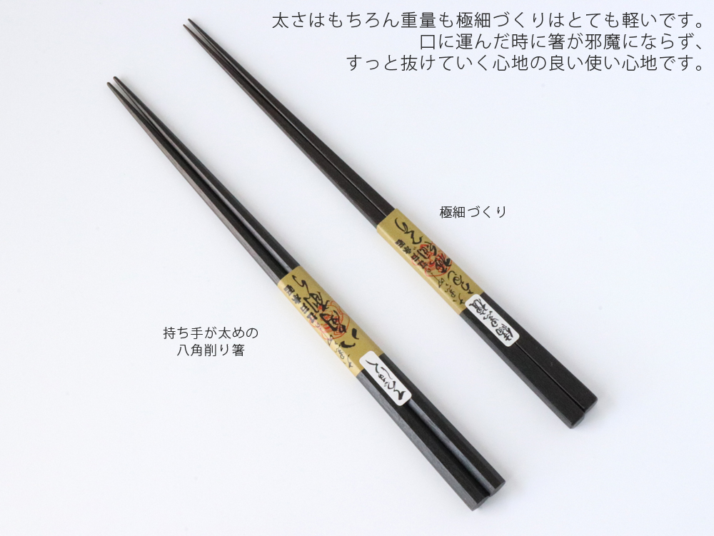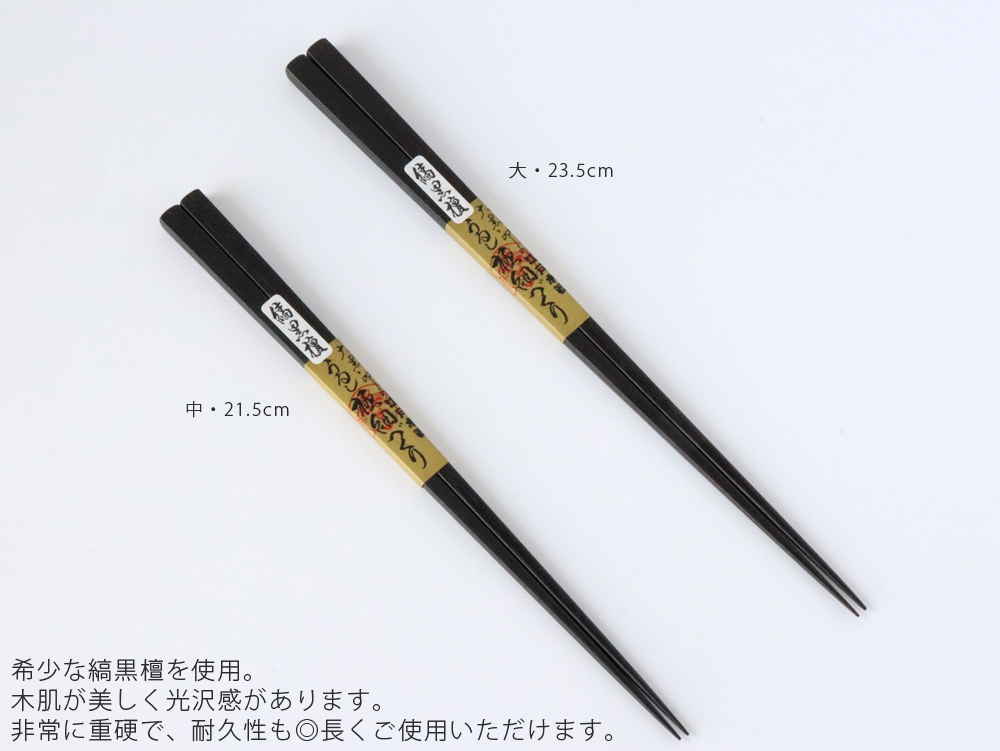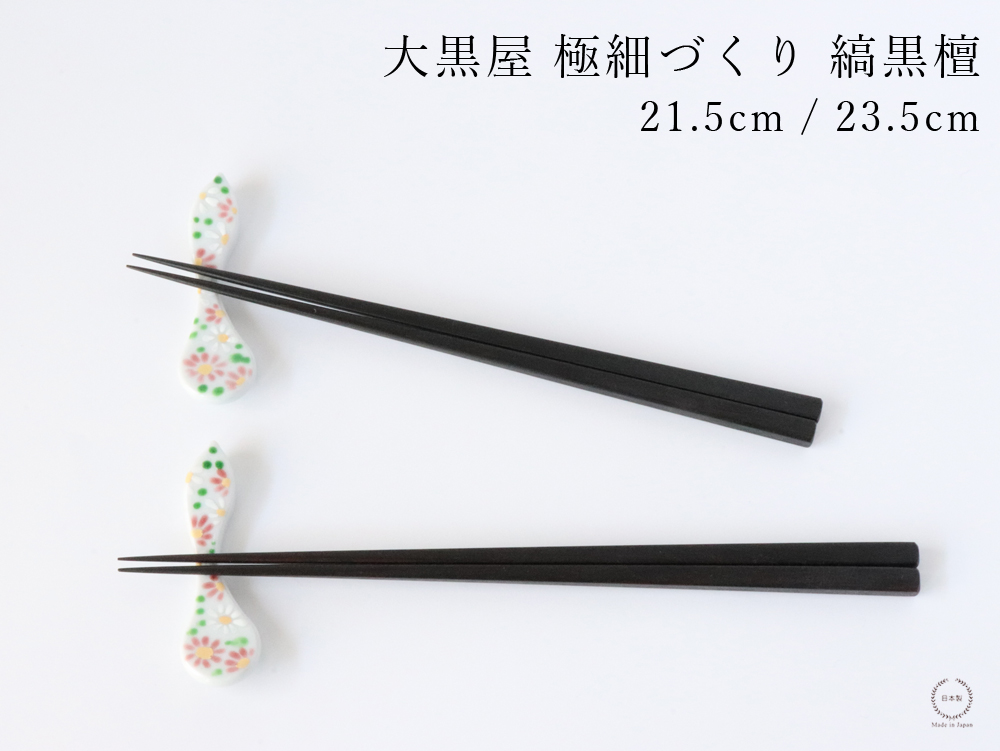 トップ > キッチン・ハウスキーピング > キッチン > 和食器 > 箸 箸置き > [ネコポスOK] 大黒屋 江戸木箸 うるし極細づくり( 縞黒檀 )21.5cm / 23.5cm