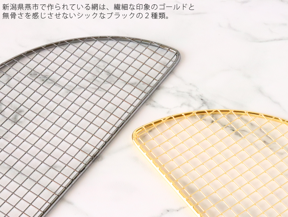 無骨さを感じさせないシックなブラックと、繊細な印象を与えるゴールドの2種類の網。
