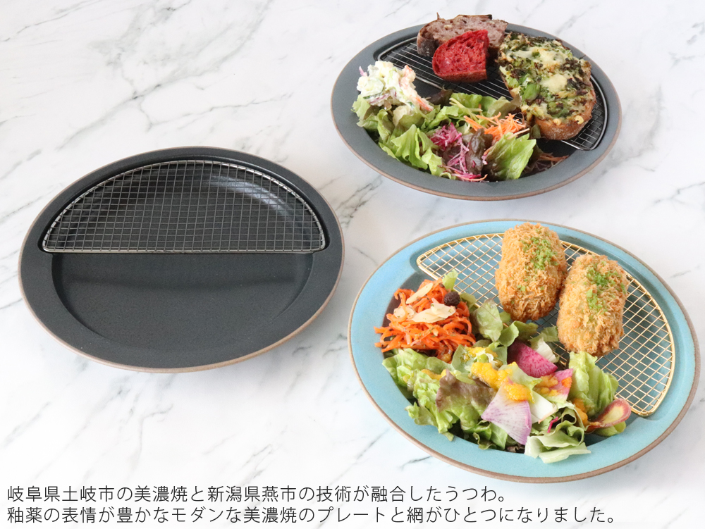 釉薬の表情が豊かなモダンな美濃焼のプレートと網がひとつになりました。