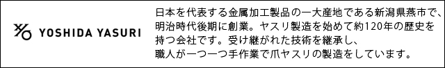 新潟県燕市で、120年以上にわたり金属加工技術を継承してきた吉田ヤスリ製作所。誰もが使いやすい爪ヤスリを目標に職人が一本一本手作業で爪ヤスリを製造しています。