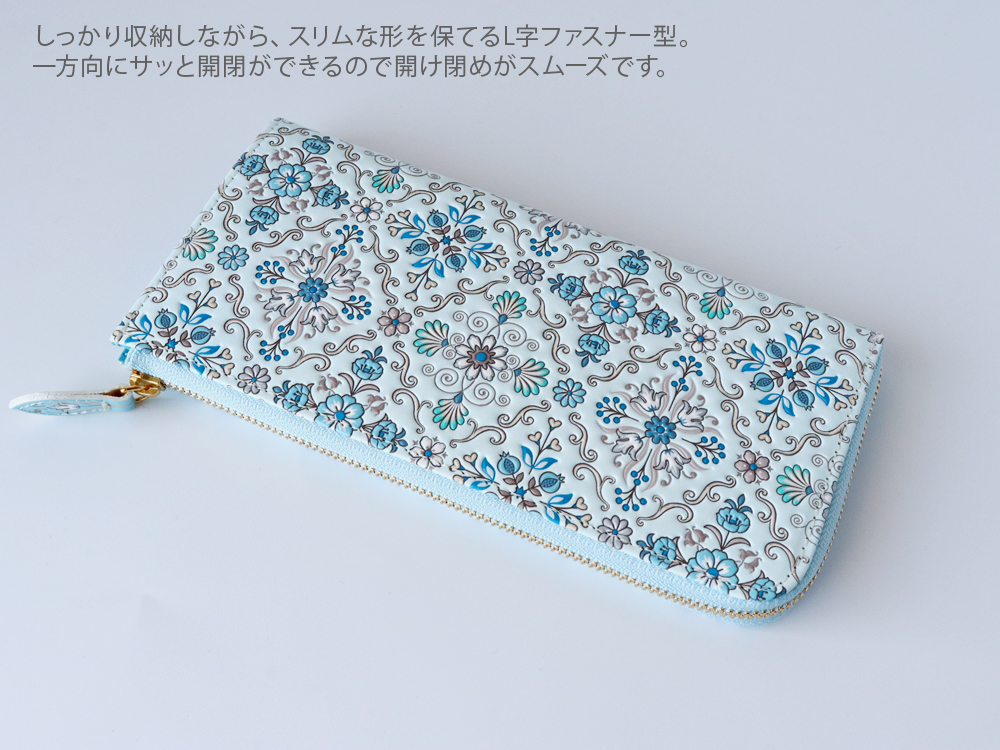 手に伝わる繊細な凹凸と革のやわらかさ 収納力抜群のスリムな長財布