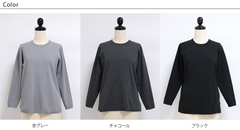 定番素材、デザインですが、従来よりワイドなリブ幅にしたことでほっそりスッキリ見え効果もアップ!