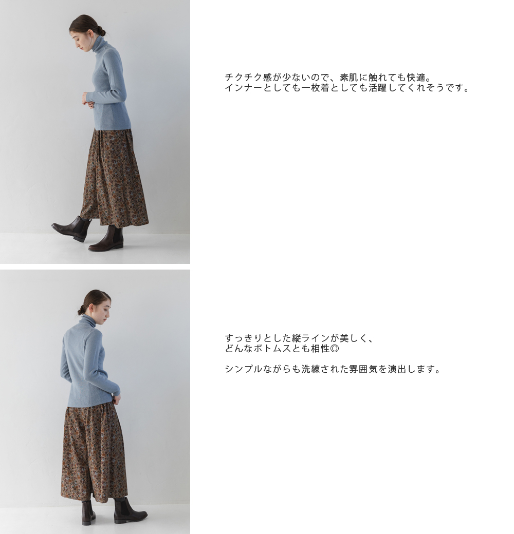 ウールではなく、カシミヤが入ったコットンのリブタートルです。