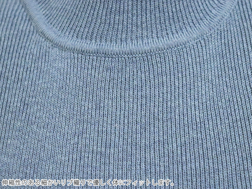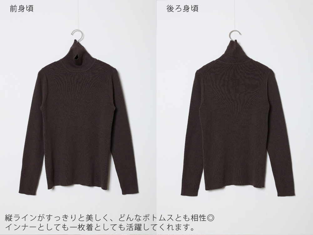 伸縮性のある細かなリブ編みで、程よく体にフィット。インナーとしても一枚着としても活躍してくれます。