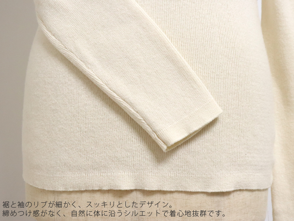 軽やかでありながらふんわりとした暖かさを感じられ、ニットにありがちなチクチク感も少なく、長時間着ても快適な着心地です。