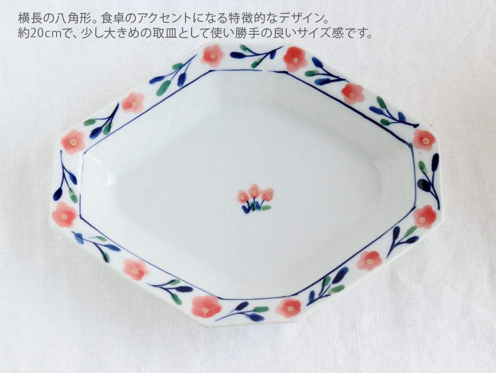 取り皿に最適!幅20cm、縁高で使いやすい八角形の舟形皿