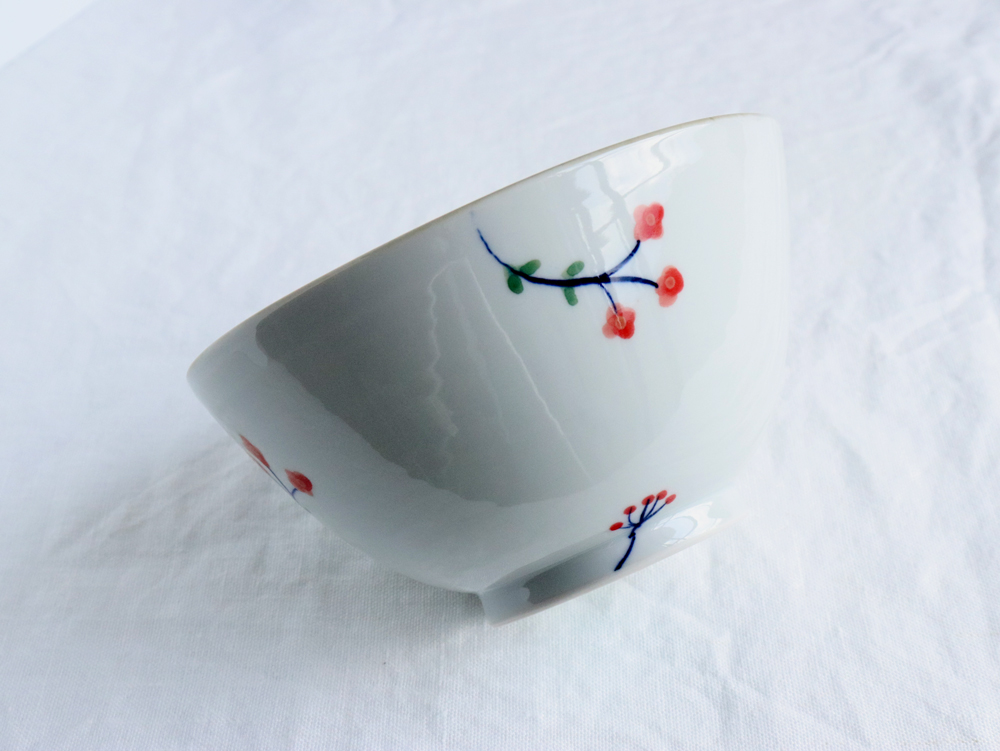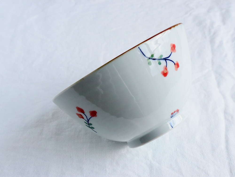 少し大きめに描かれた、お花と実が散りばめられた、控えめな絵柄は和食だけでなく洋食でも、どんなものを盛り付けても違和感なくなじみますので、用途が広いです。