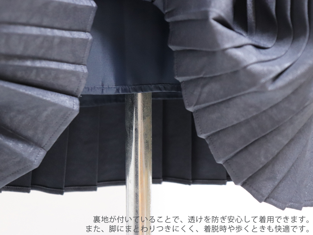 前は太め、後ろは細めのプリーツ切替で、歩くたびに上品に揺れる、大人の女性におすすめしたいプリーツスカートです。
