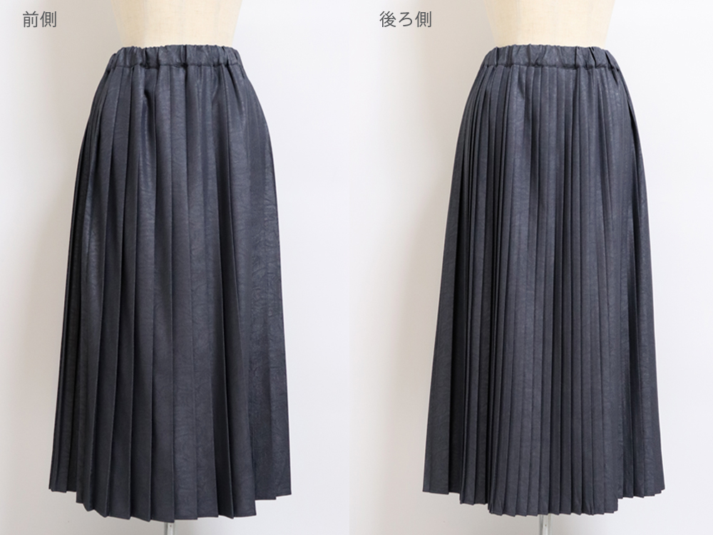 どちらのプリーツを前に持ってくるかで印象を変えられる、一枚で二度嬉しいスカートです。