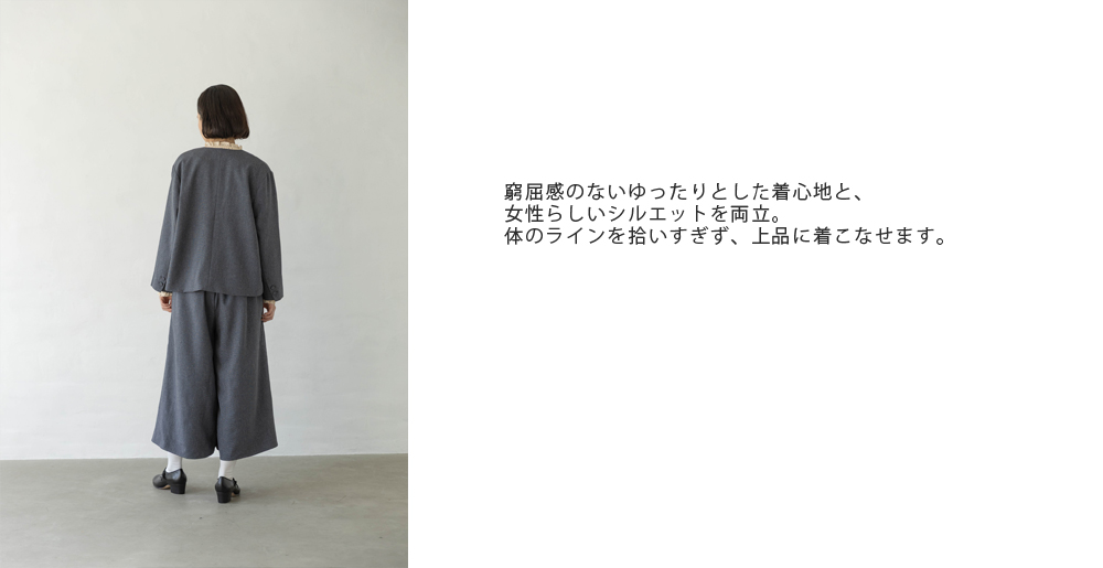 ゆったりとした着心地ながら、女性らしいシルエットで上品に見せてくれます。