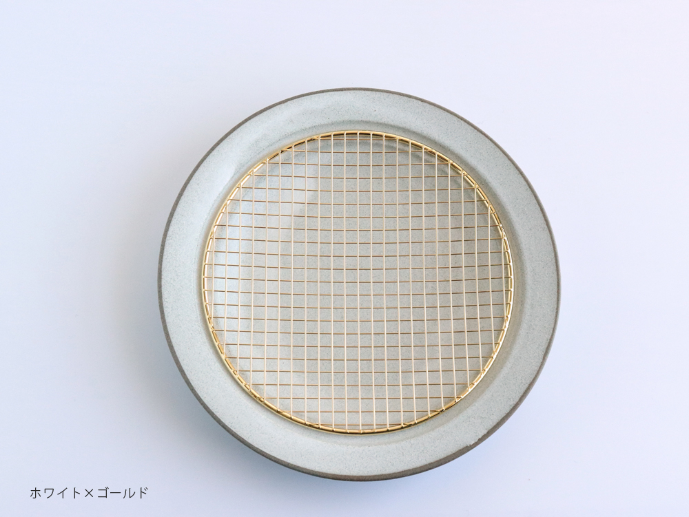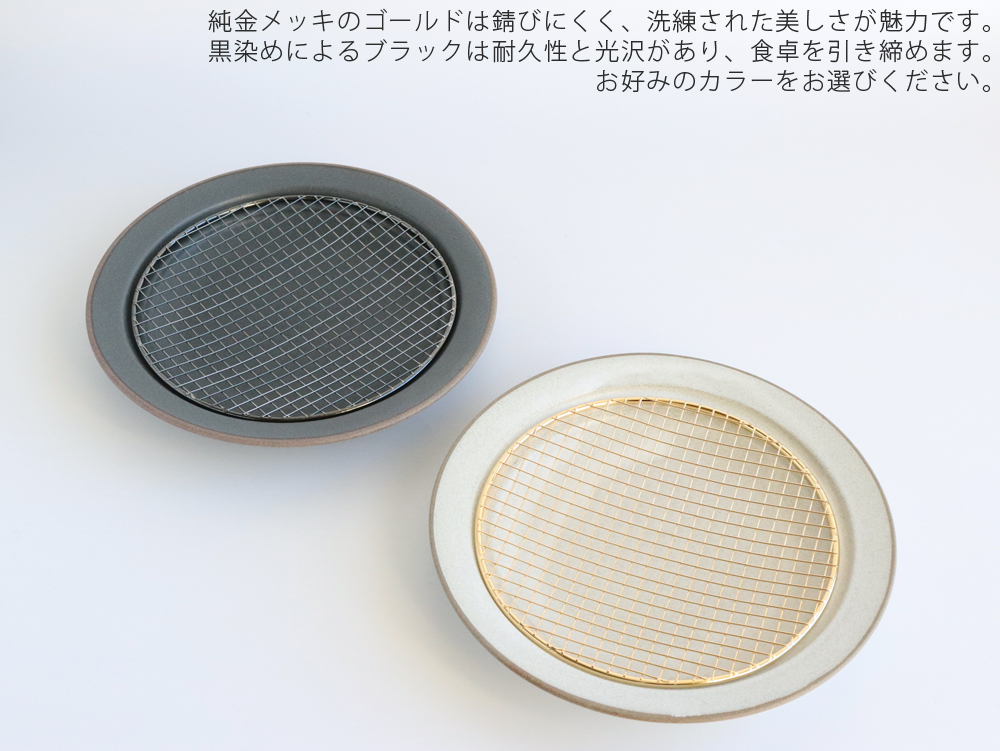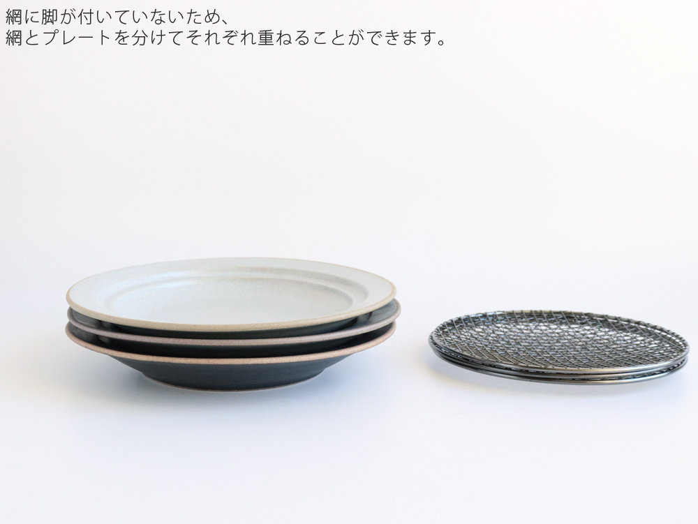 釉薬の表情が豊かなモダンな美濃焼のプレートと網がひとつになりました。