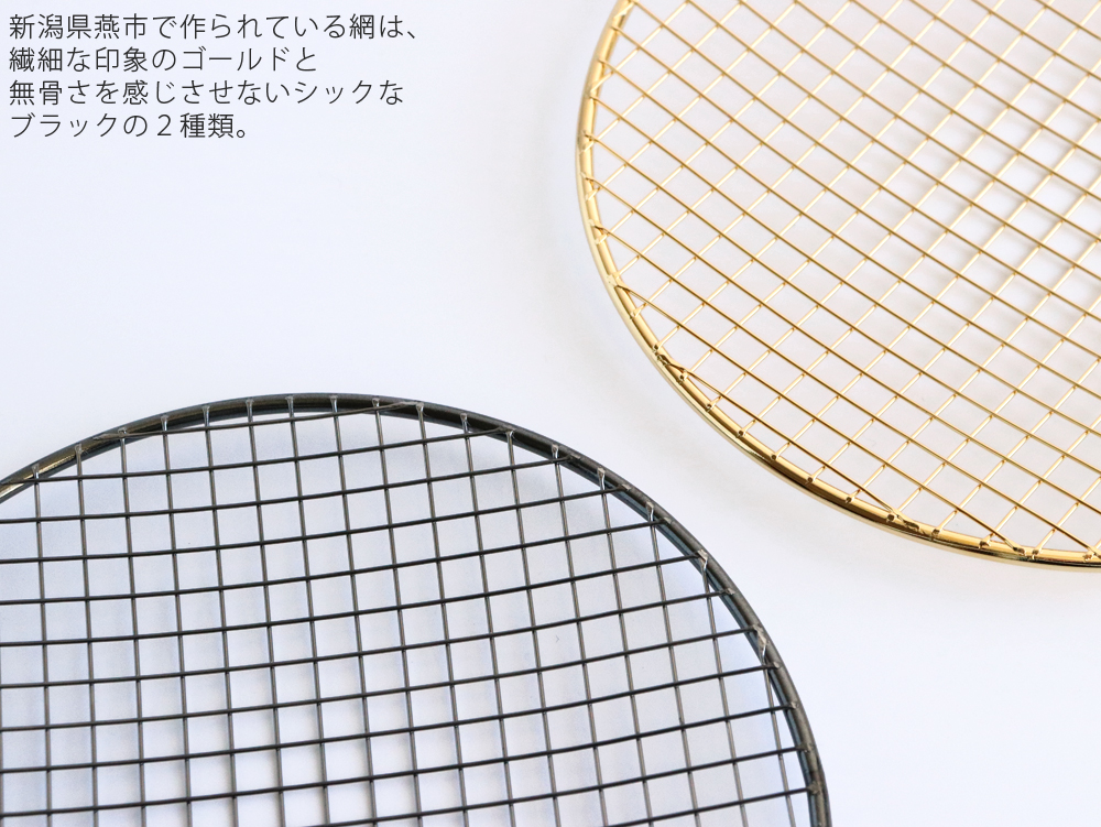 無骨さを感じさせないシックなブラックと、繊細な印象を与えるゴールドの2種類の網。